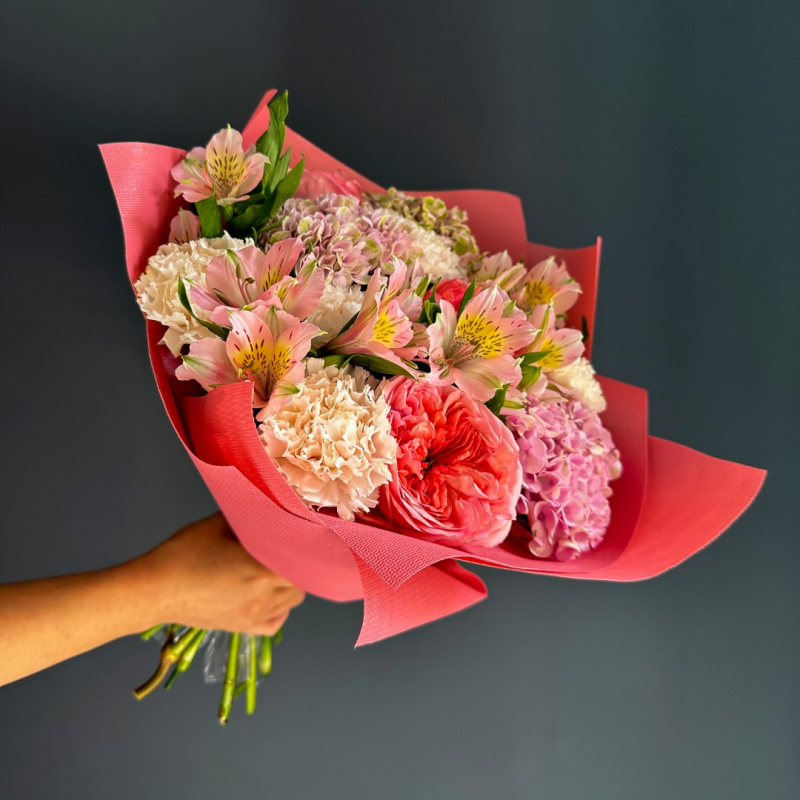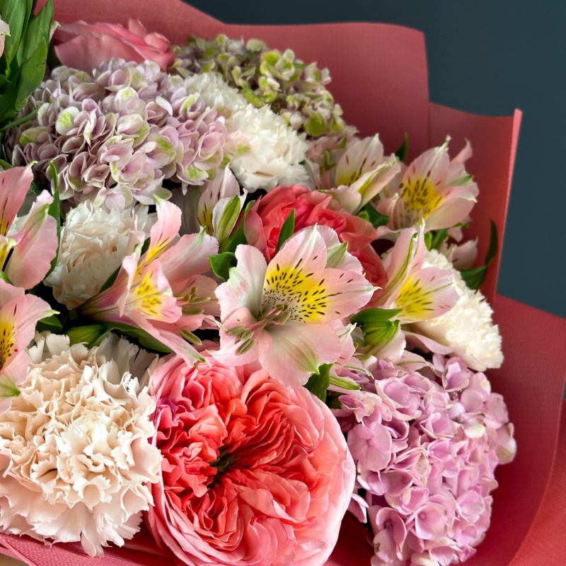 Нежная гортензия в упаковке. Получатель, без сомнения, сохранит приятные эмоции, связанные с этим букетом