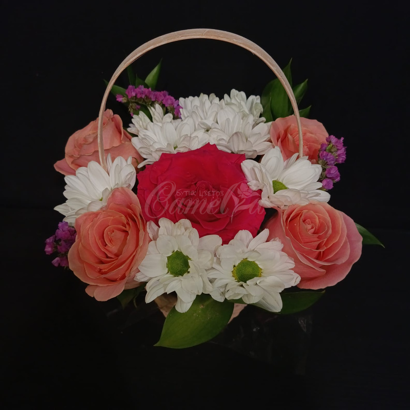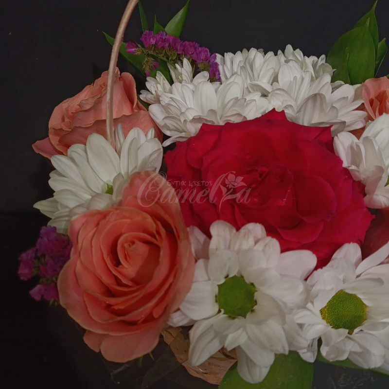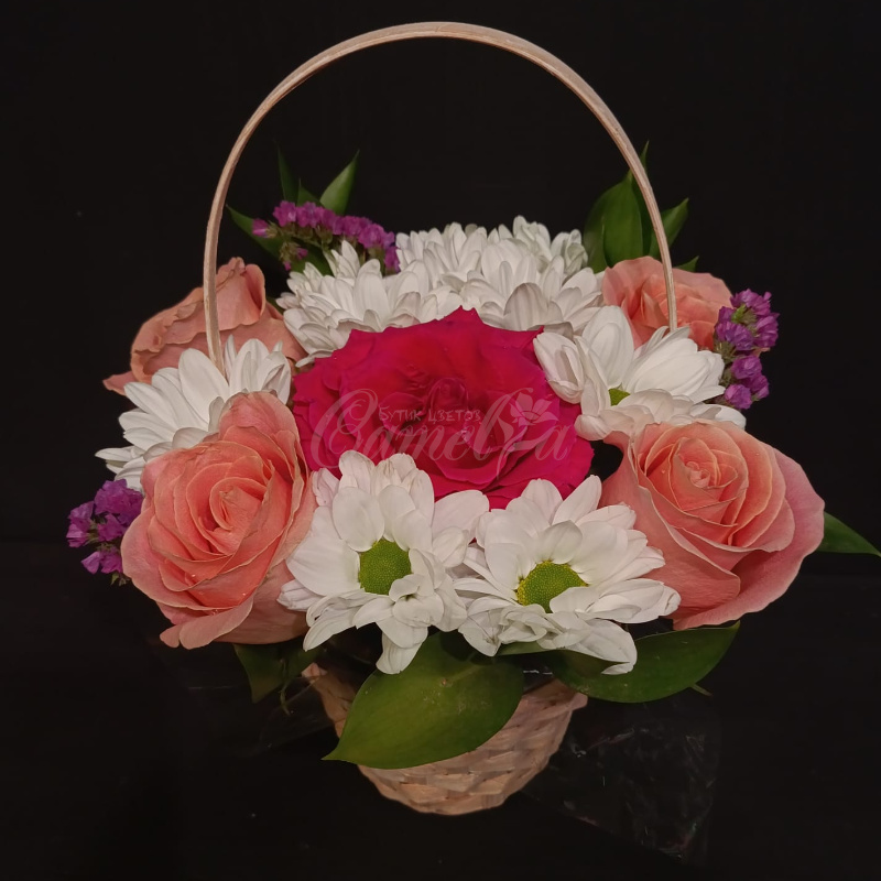 Эта композиция из свежих роз и хризантемы кустовой которые придают особую элегантность. Розовые розы символизируют нежность и невиновность. Это идеальный подарок для тех, кто ищет подарок с классическим шармом и прекрасным ароматом