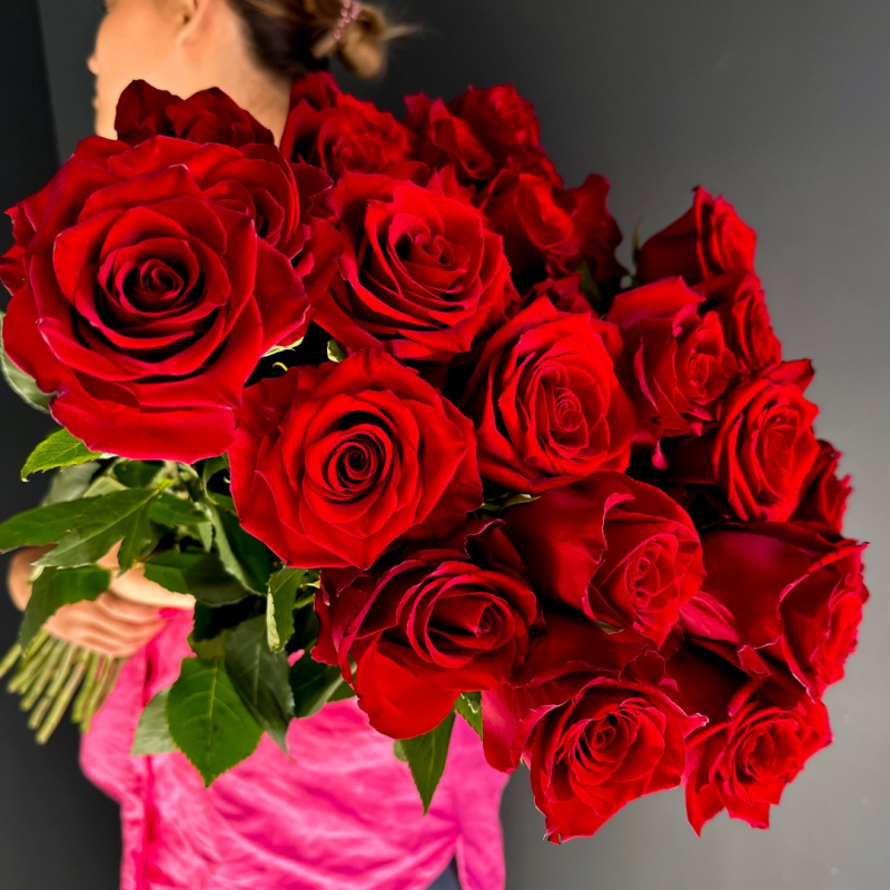 Пышный букет алых роз