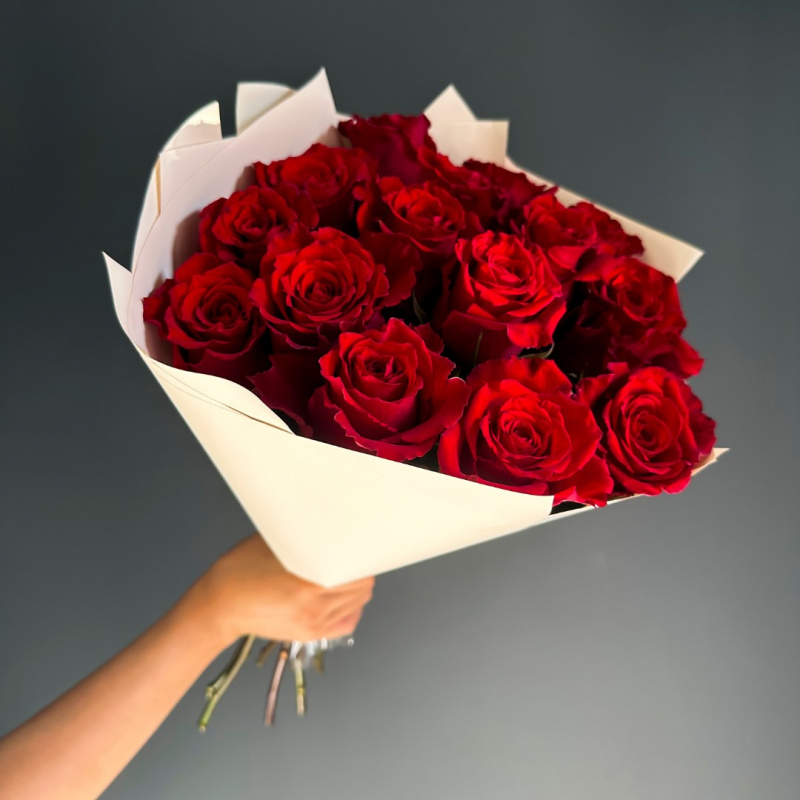 Классический букет из красных роз станет прекрасным подарком на любое торжество